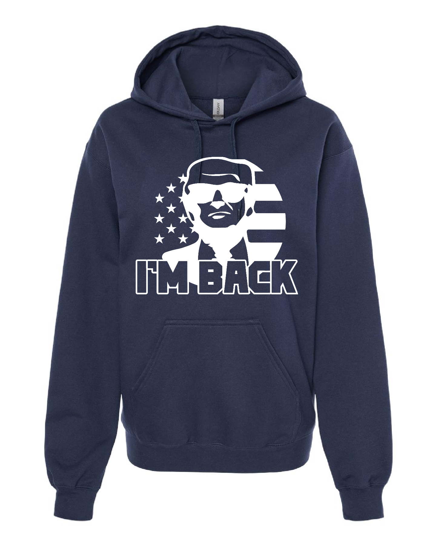 Im Back White – Navy Hoodie